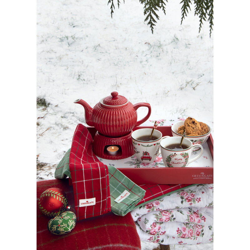 Bavlnený obrus-behúň v karovanom vzore Lyla check green od dánskej značky Green Gate vnesie každému stolovaniu sviatočnú atmosféru.