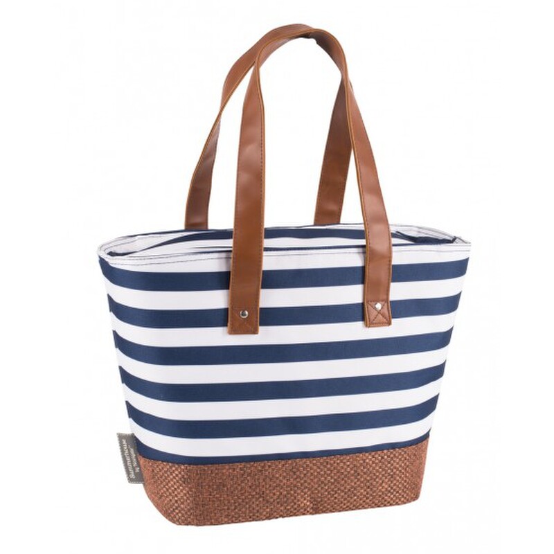 Preneste si svoj obed so všetkými dobrotami štýlovo - v tejto modernej taške s námorníckym vzorom a vypletanou spodnou časťou a koženkovými ramienkami. Taška je vytvorená z materiálu, ktorý izoluje, je umývateľná z vnútornej i z vonkajšej strany a dokonale praktická pre každodenné použitie. Taška je uzatvárateľná na zips.