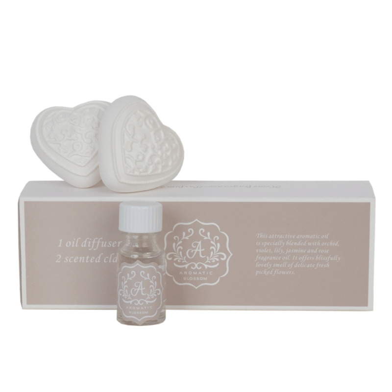 Dva vonné kamienky v tvare srdiečka s vonným olejčekom s jemnou vôňou kvetov (orchidea, fialka, ľalia, jasmín a ruža) v darčekovej krabičke.