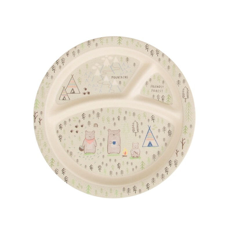 Aby deťom lepšie chutilo a s radosťou zjedli ovocie i zeleninu, ponúknite im jedlo z taniera s rozkošným medvedíkom, ktorý sa rozhodol kempovať. Tanier je vyrobený z bambusového vlákna - takže je šetrný k prírode. Má priehradky, takže môžete rozdeliť jednotlivé chody. Keďže je vyrobený z bambusu je veľmi ľahký. Je vhodný do umývačky riadu a neobsahuje BPA látky. Nie je vhodný do mikrovlnnej rúry.