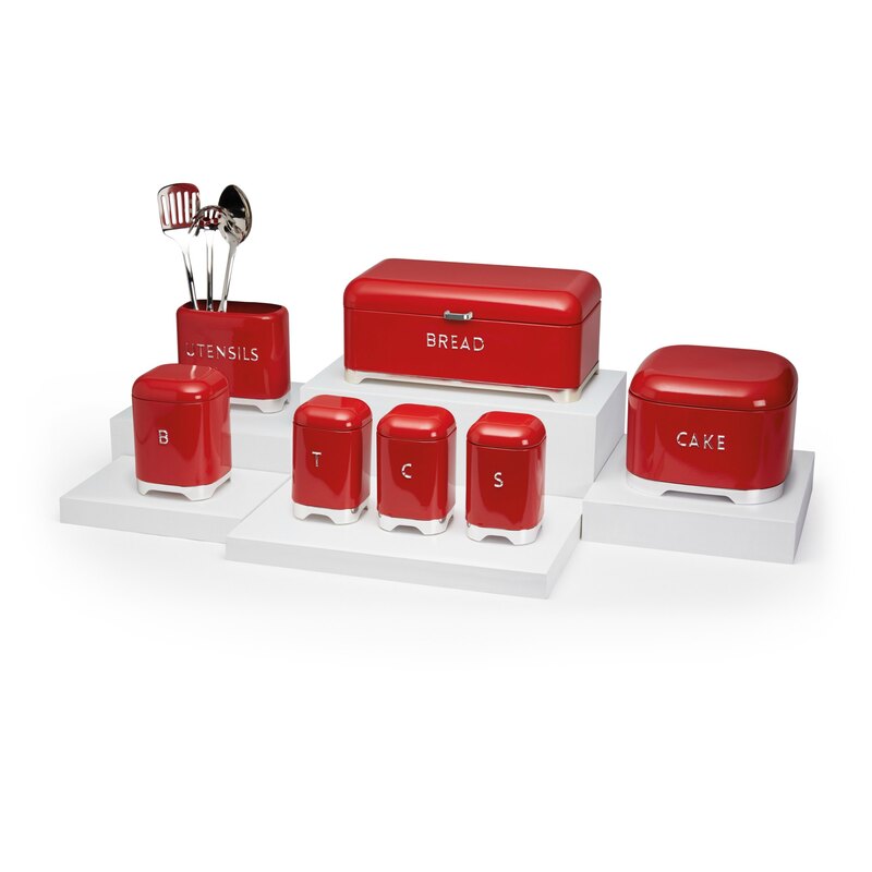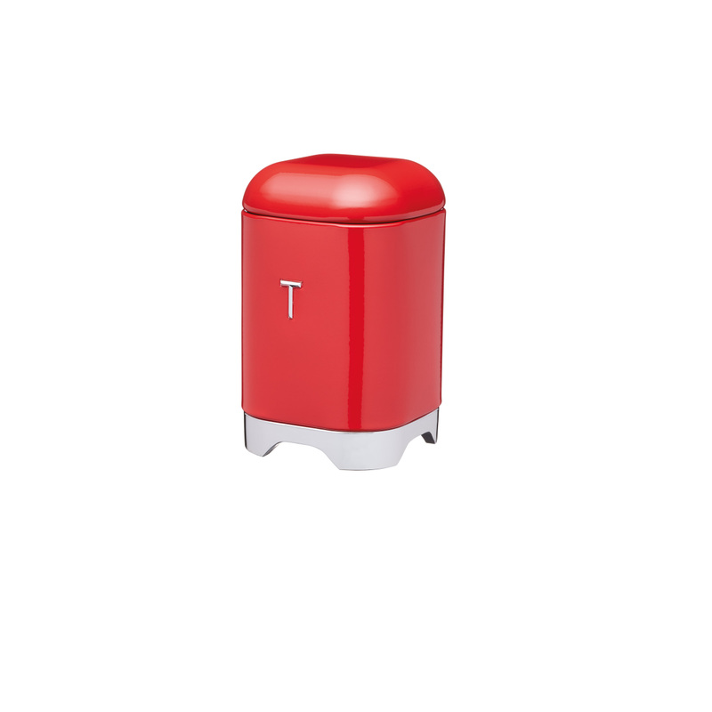 Krásna plechová retro dóza na čaj v červenej farbe prinesie šarm do vašej kuchyne. Dóza je označená strieborným "T" ako tea (čaj) a má strieborné nožičky. Dóza je navrhnutá tak, aby maximalizovala vašu pracovnú plochu a zmenšila neporiadok.