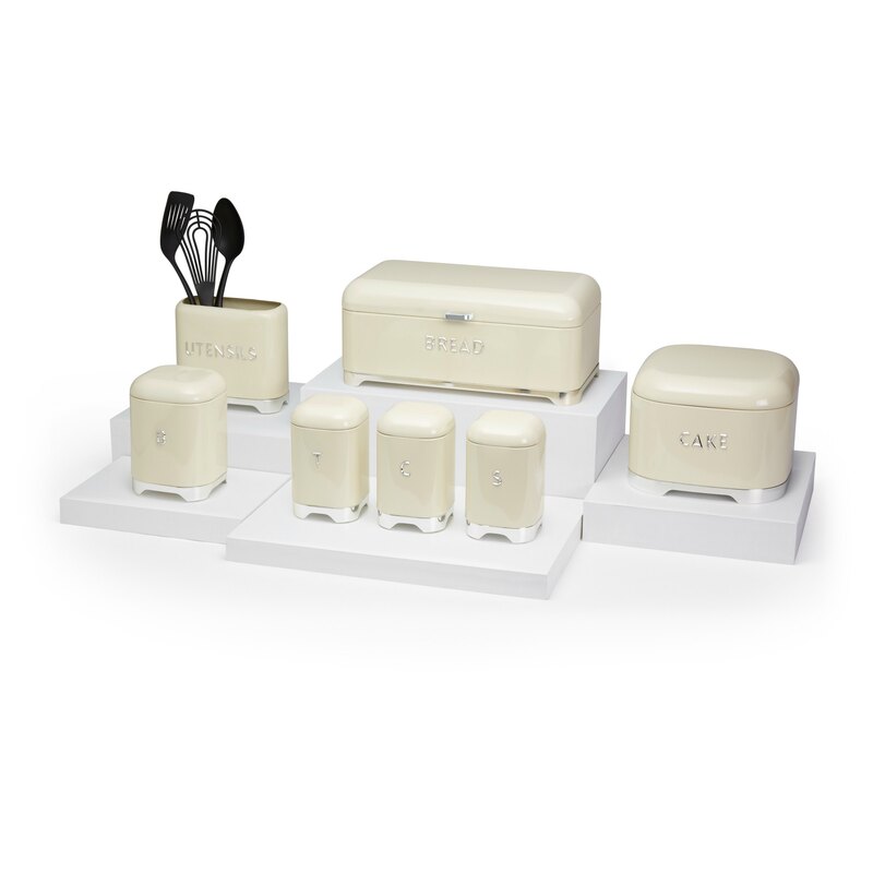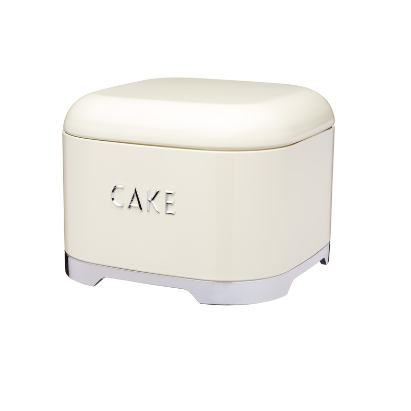 Ako za starých čias - ponúknite hosťom chutné koláče tradičným štýlom z elegantnej retro dózy. Krásna plechová dóza na v krémovej farbe, ktorej uzatváranie je chránené silikónovým pásom a tak udrží koláče dlhšie čerstvé a plné vôňe. Dóza je označená strieborným nápisom "CAKE" - koláč a stojí na strieborných nožičkách.