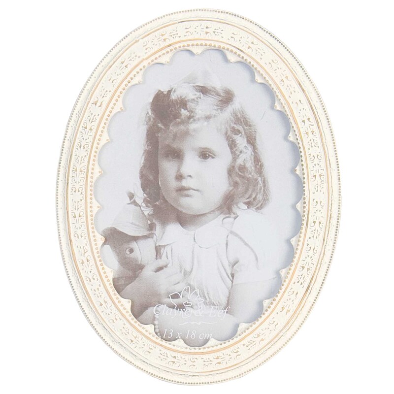 Oválny vintage fotorámik s jemným dekorom. Farba: biela.Prierez na fotku : 13c18cm