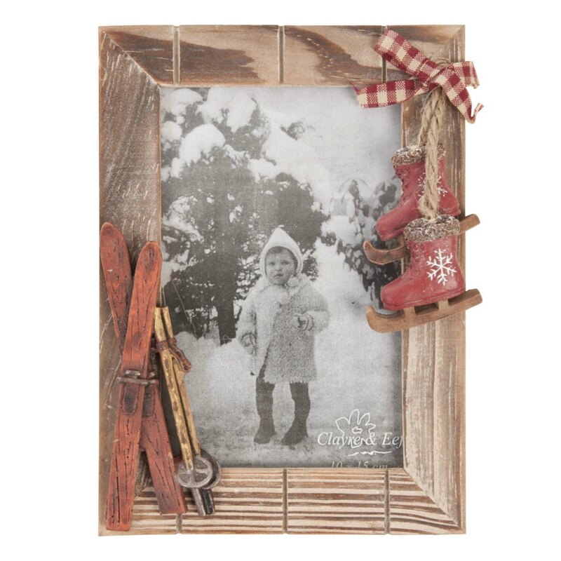 Drevený fotorámik s korčuľami a lyžami - na zimné spomienky.Fotorámik je možné postaviť i zavesiť.