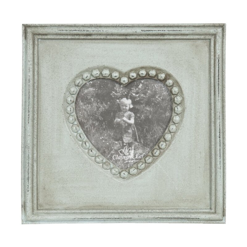 Drevený fotorámik so srdiečkovým výrezom na fotku (10x10 cm). Farba: sivo-modrá