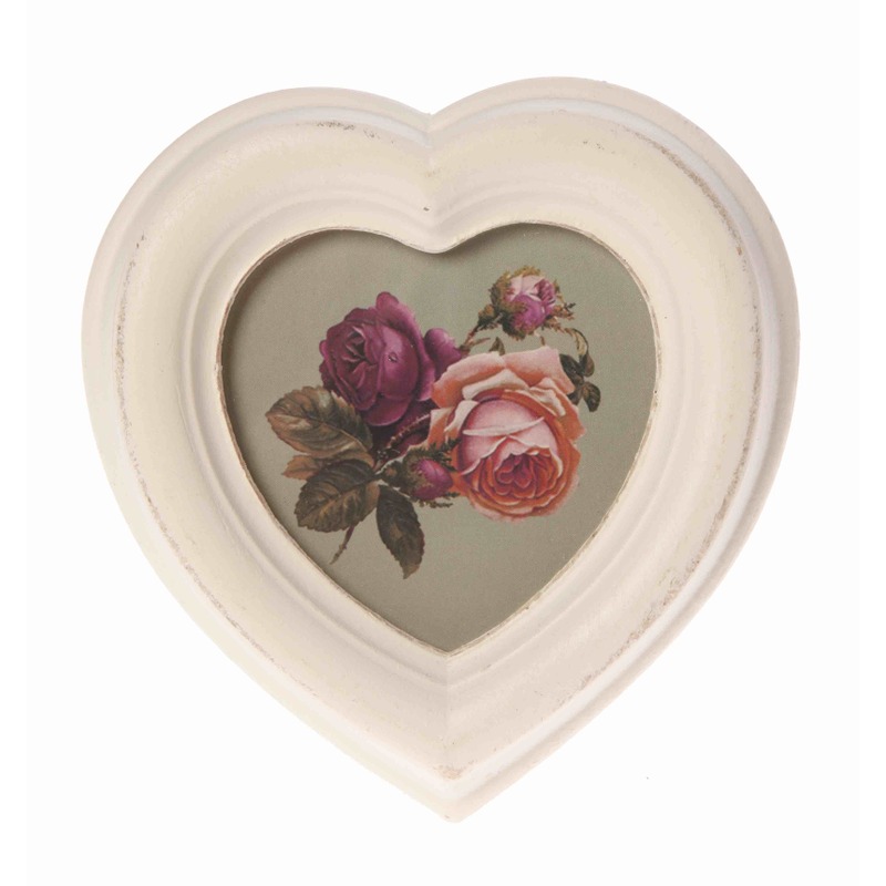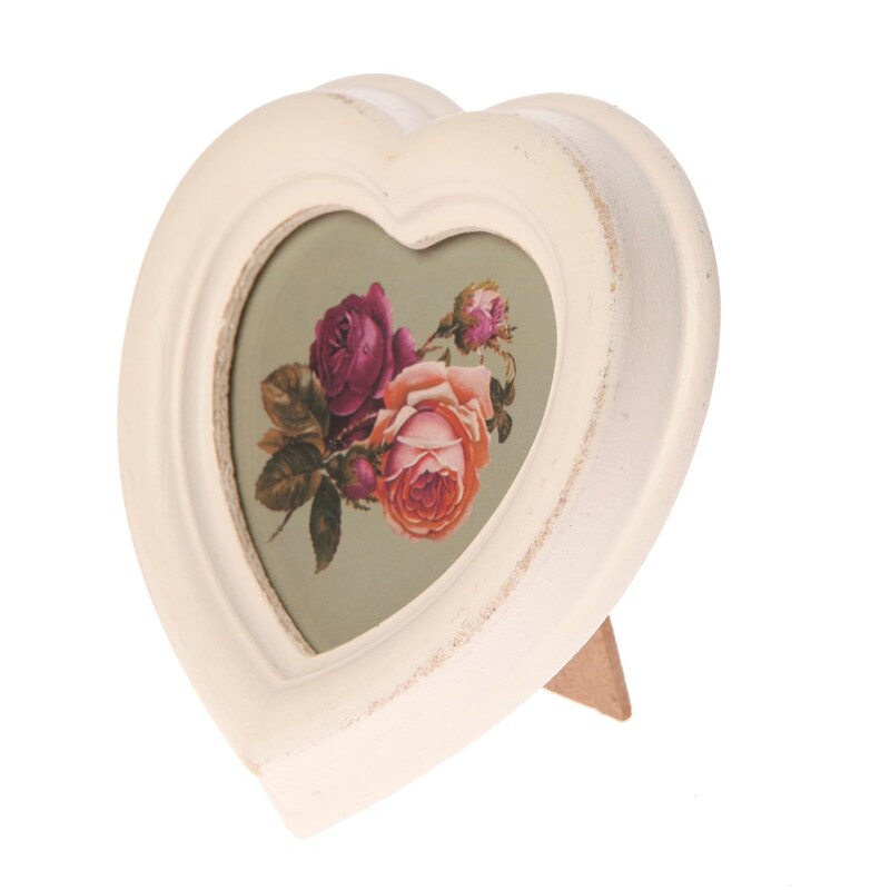 Fotorámik srdiečko na postavenie, na foografiu v rozmer 6 x 7 cm. Rámik má ošúchaný vzhľad.