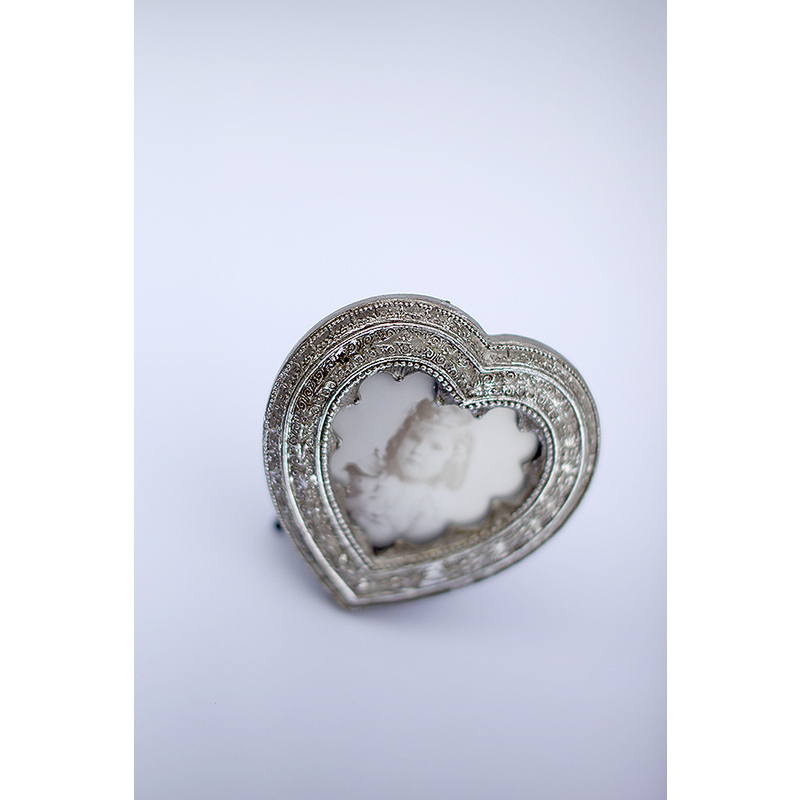 Fotorámik v tvare srdiečka na fotografiu max. rozmerov 9 x 9 cm. Farba: strieborná