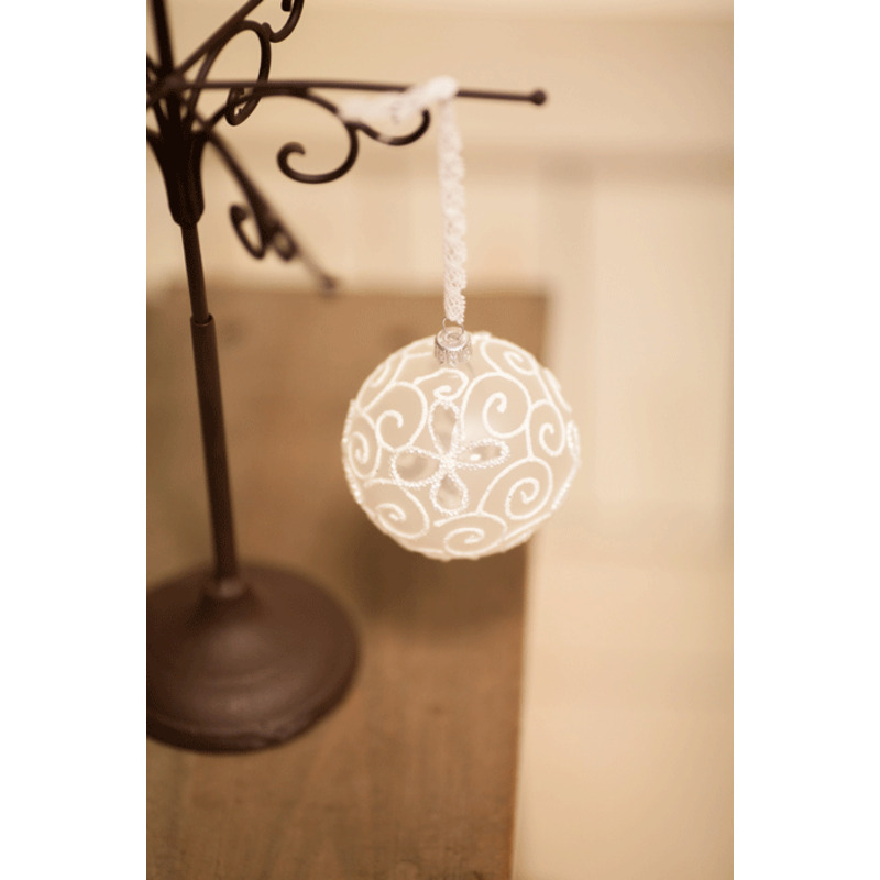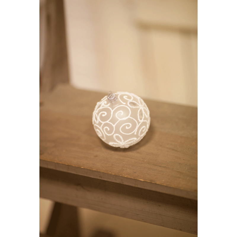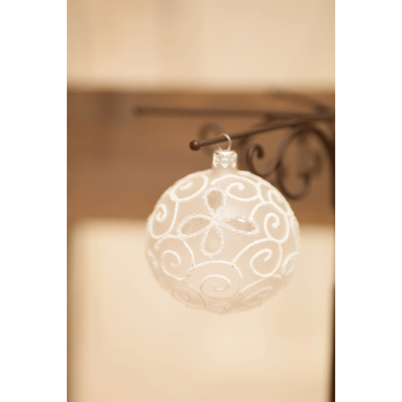 Krásna sklenená matná biela guľa s jemným ornamentom.