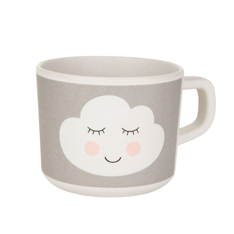 Hrnček pre deti s uškom z obláčikovej kolekcie je vyrobený z bambusového vlákna - takže je šetrný k prírode. Má skvelú veľkosť - perfektnú pre malé detské ruky. Je veľmi ľahký, vhodný do umývačky riadu a neobsahuje BPA látky. Nie je vhodný do mikrovlnnej rúry.
