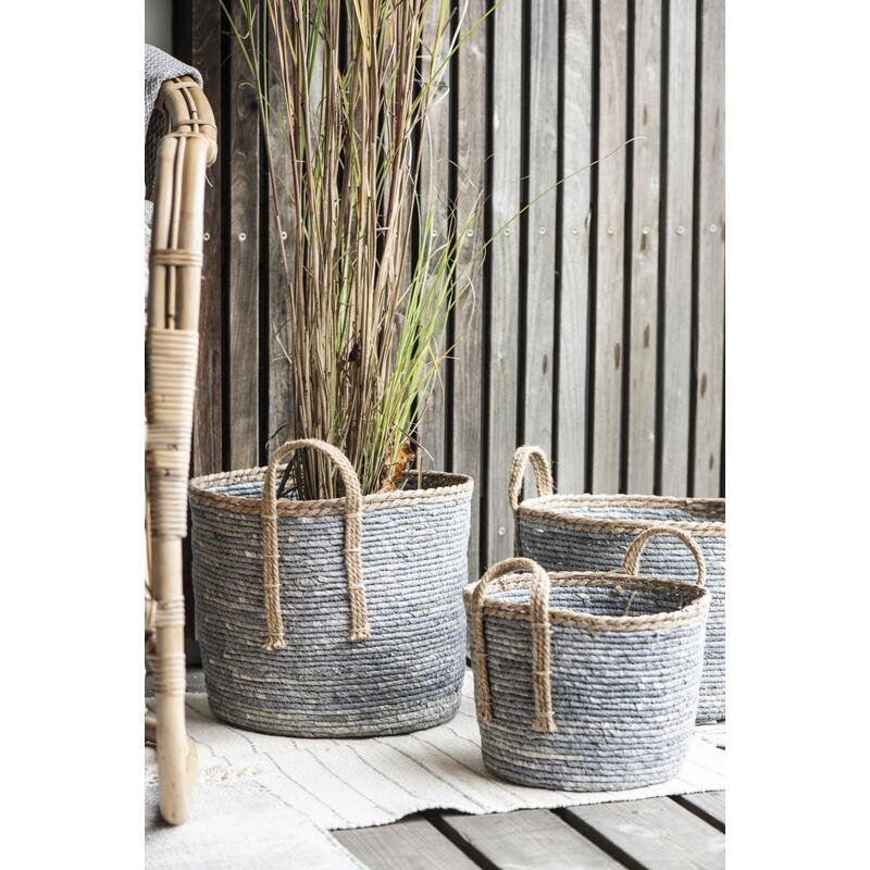 Ak máte stále málo úložného miesta, neviete, kam zložiť deky, vankúše či hľadáte pekný obal na kvet, máme pre vás tieto krásne koše od dánskej značky Ib Laursen. Sú vyrobené z kukuričného vlákna a majú jutové ušká. Krásna sivo-modrá farba už iba dopĺňa dokonalý zjav.