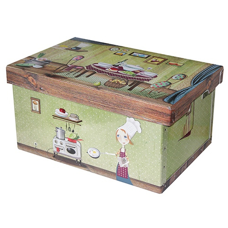 Pevná lepenková krabica s obrázkom kuchárky - hodí sa do kuchyne na uschovanie Vašich zošitov s receptami, na korenie alebo rôzne drobnosti.