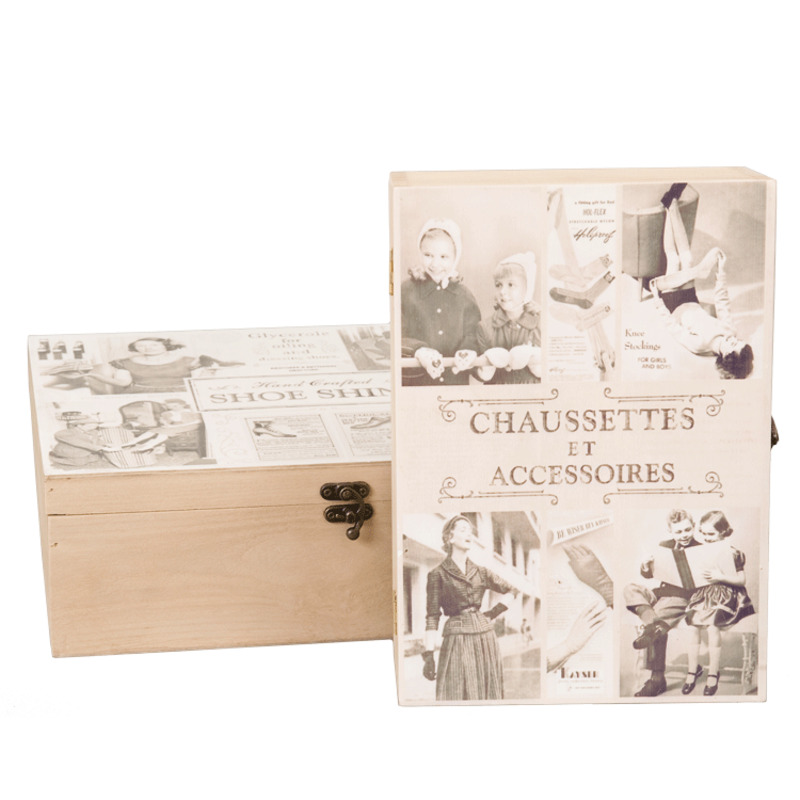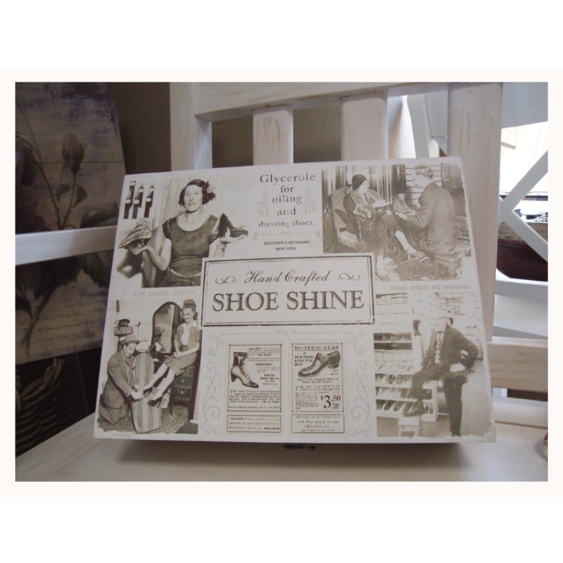 Originálna drevená krabica s kovovým zatváraním. Na vrchnej časti s čiernobielou fotografiou s anglickým nápisom " Shoe Shine" - " Lesklé topánky."