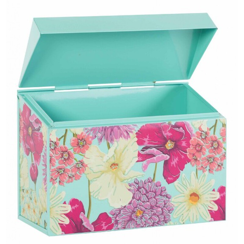 Krásny kvetovaný kovový box môže slúžiť na uloženie rôznych drobností- servítkov, lyžičiek....Kam si upratať semienka kvetov, ktoré Vám zostali alebo Vám ich darovala susedka? Box je na to skvelý.