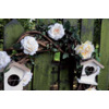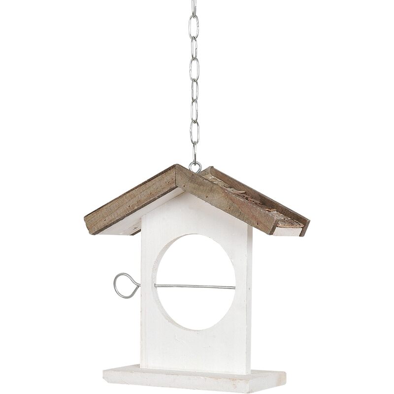 Kŕmidlo pre vtáčiky. Strecha z drevenej kôry - výrez v tvare kruhu. Na ihlicu sa môže napichnúť jabĺčko alebo tuková guľka so semiačkami...
