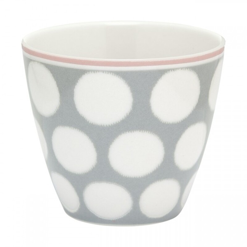 Bodky - bodky - bodky - nikdy ich nie je dosť. Krásna porcelánová šálka od dánskej značky Green Gate s veľkými bielymi bodkami na sivom podklade - skvelá na kávu, čaj alebo limonádu.