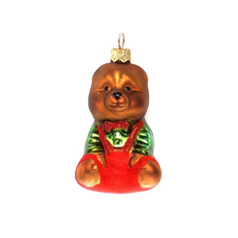 Určite si pamätáte, aké kúzlo mali pre Vás Vianoce, keď ste boli deťmi. Nemalú zásluhu na tom mal i stromček trblietajúci sa ozdobami. Nechajte i Vy rozžiariť Váš stromček nádhernými sklenenými ozdobami a vychutnajte si tak neopakovateľné kúzlo Vianoc... Sklenená ozdoba - medvedík, farba hnedá, červené nohavice a motýlik, zelená košeľa.
