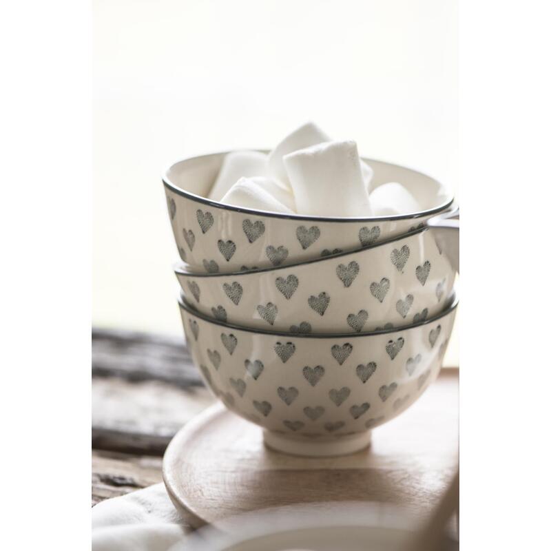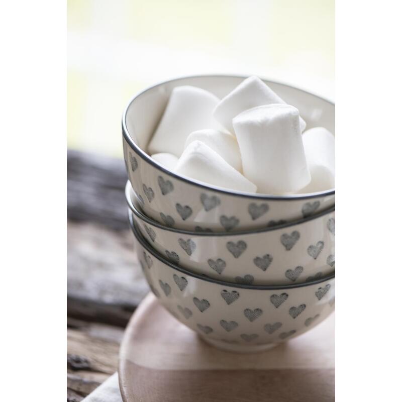Roztomilé sivé srdiečka na miskách môžete použiť na raňajkovú kašu alebo oriešky či sušienky. Sú skutočne rozkošné.