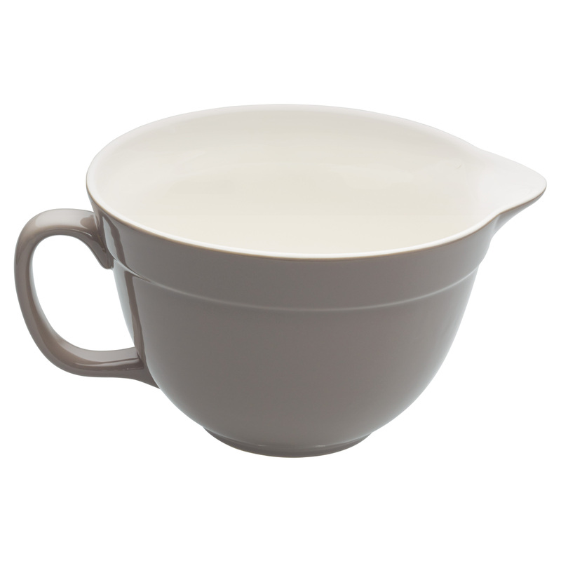 Táto kameninová misa na miešanie a šľahanie cesta alebo plnky. Vďaka lieviku ľahko nalejete cesto do formy alebo plechu bez toho, aby ste urobili zbytočný neporiadok.