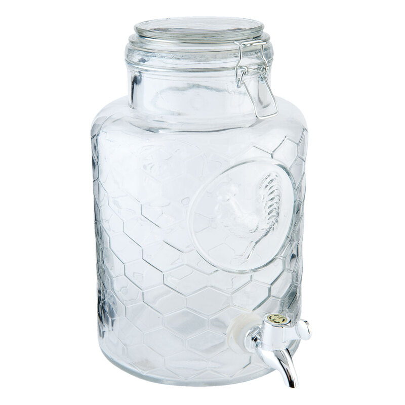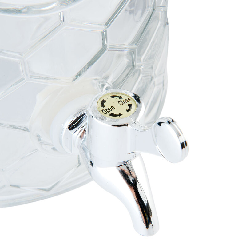 Ideálne na záhradné párty a oslavy - nádoba na limonádu, džús alebo punč je krásne dizajnovaná s čistým sklom a "úľovým" dizajnom. Naplňte ju niečím osviežujúcim a určite tak urobíte dobrý dojem na svojich hostí. Nápoj môžete dávkovať buď s pomocou naberačky,alebo točiť priloženou pípou.