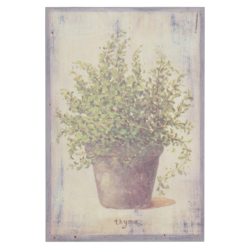 Obrázok s motívom tymiánu - decoupage na dreve.