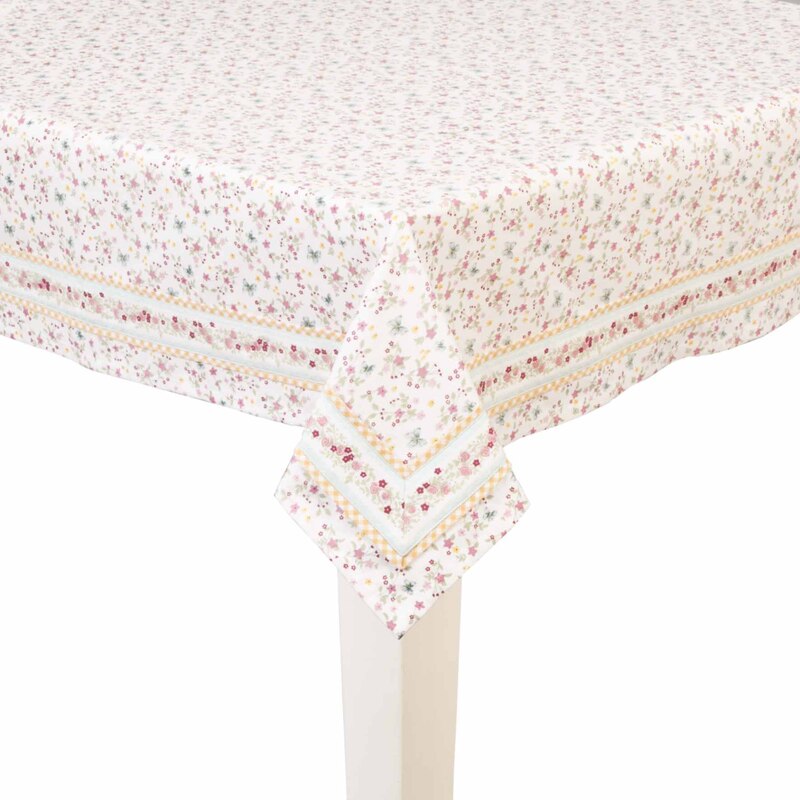 Bavlnený obrus z kolekcie "leť ako motýľ" s jemným vzorom drobných kvetov a motýľov.