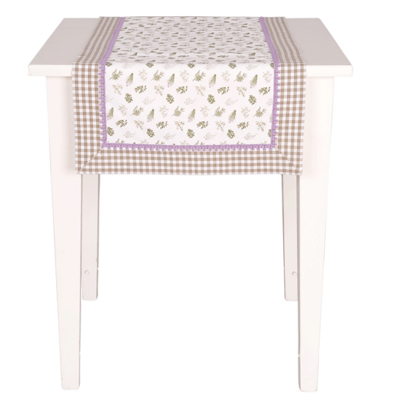 Obrus s potlačou "bylinky z Provensálska" - bylinkový obrus s kockovaným lemom. Na konci bylinkového vzoru má obrus fialovú krajku. Farba: biela/hnedá/fialová/zelená Zľava -20%.