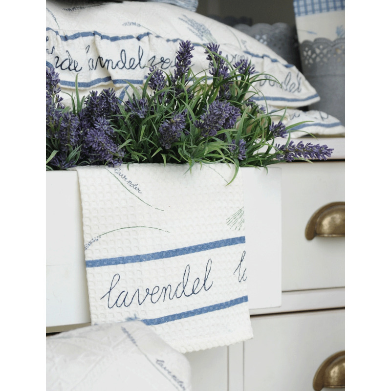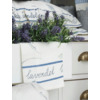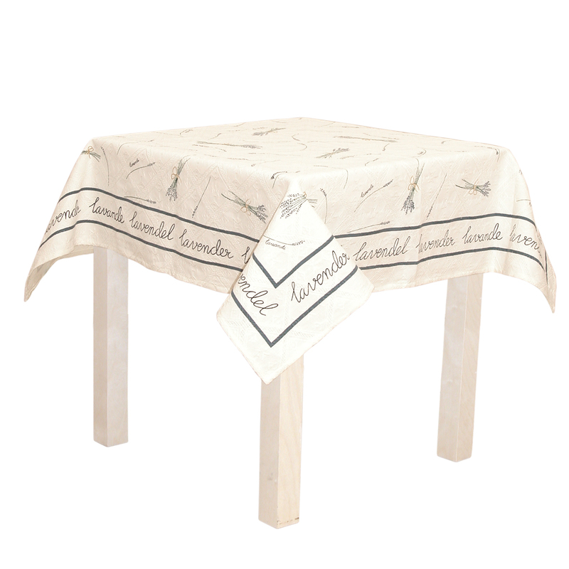 Jemný biely bavlnený obrus s levanduľovou obrubou. Farba: biela/modrá