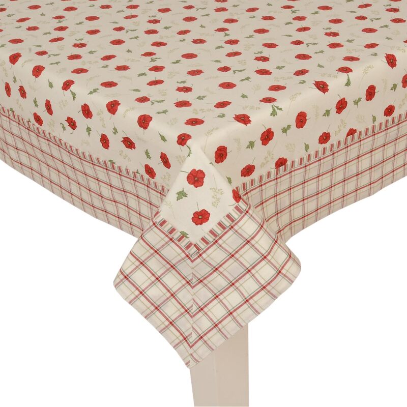 obrus "makové pole" - biely podklad s drobnými kvetmi maku Farba: červená/biela