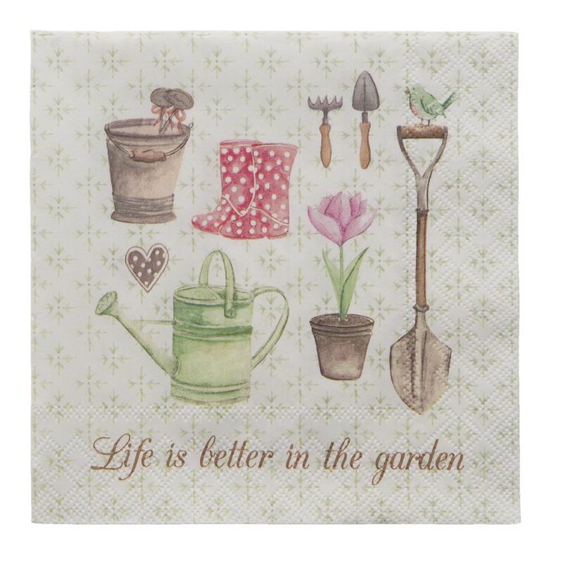Papierové obrúsky so záhradným motívom na dokonalé doladenie stolovania. Balenie obsahuje 20 kusov.