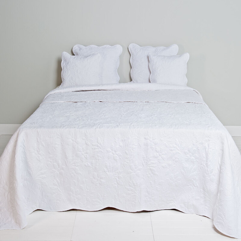 Patchworková prešívaná prikrývka v bielej farbe s jemným vzorom. Krásne sa hodí na rýchle ustlanie postele alebo príjemné prikrytie pri čítaní knižky.