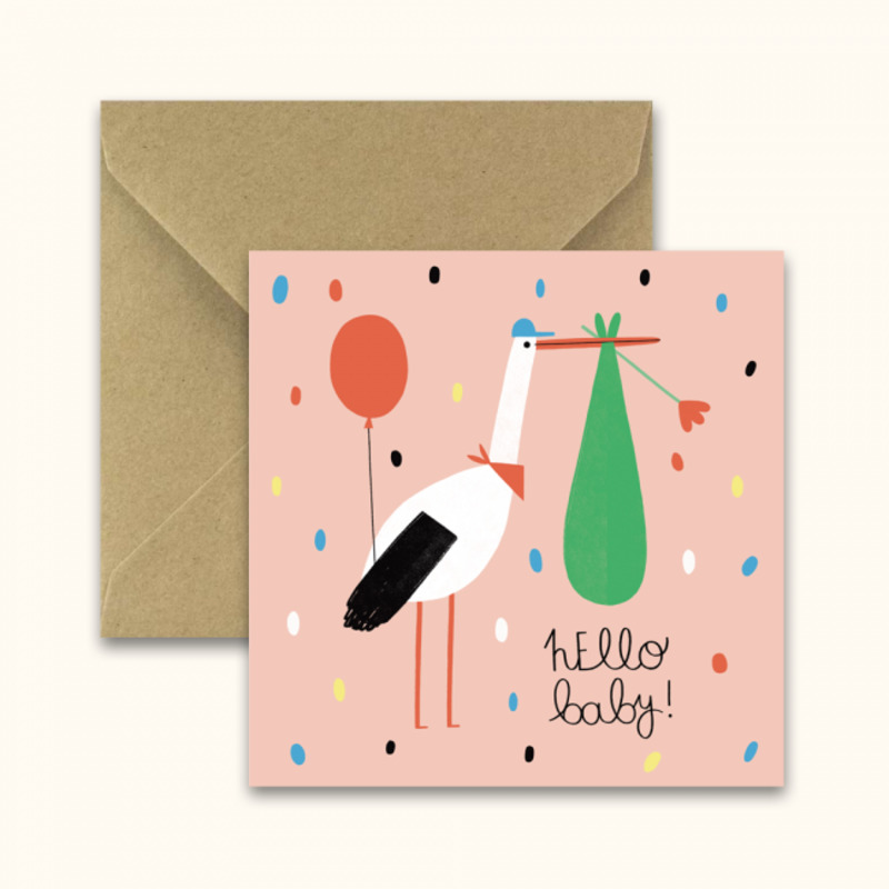 Pohľadnica bociana s prekvapením v batôžku je určená všetkým čerstvým rodičom. Pohľadnica je v sete i s pribalenou obálkou z recyklovaného papiera.