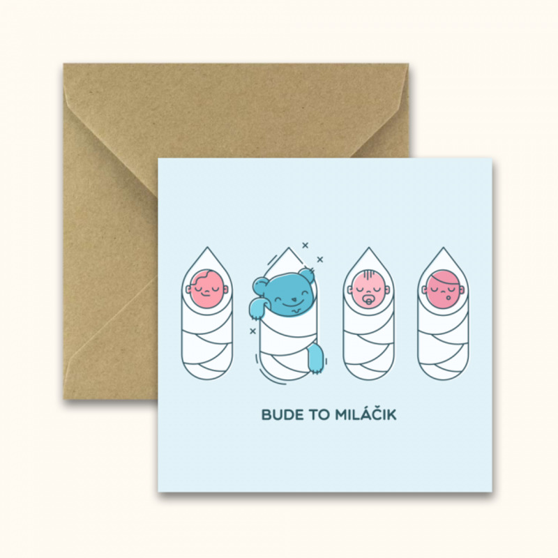 Pohľadnica k narodeniu bábätka - je farebne neutrálne ladená, aby sa hodilo ako pre chlapčeka tak i pre dievčatko. Pohľadnica je v sete i s pribalenou obálkou z recyklovaného papiera.