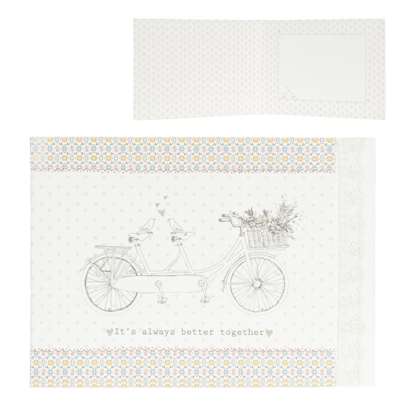 Papierová pohľadnica s obálkou, s dvojitým bicyklom pre všetkých zaľúbencov - skvelá i na svadobné vinše.