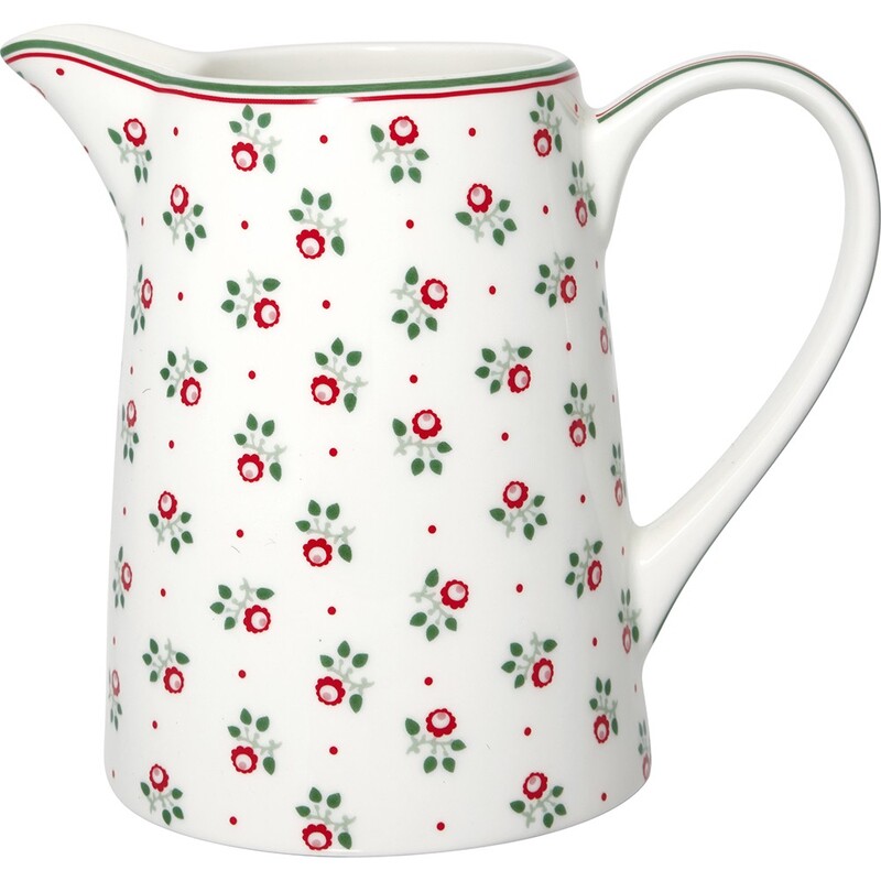 Tento romantický džbán s uškom je vhodný na podávanie čaju, domácej limonády, skvele však poslúži aj ako váza na kvety. Nádherný kvetinový vzor Abi petit white bude navyše ozdobou vašej kuchyne. Kombinujte ho s ďalšími doplnkami od Green Gate s rovnakým vzorom a vytvorte si tak svoju jedinečnú sadu riadu! Džbán je vhodný do umývačky riadu aj do mikrovlnnej rúry.