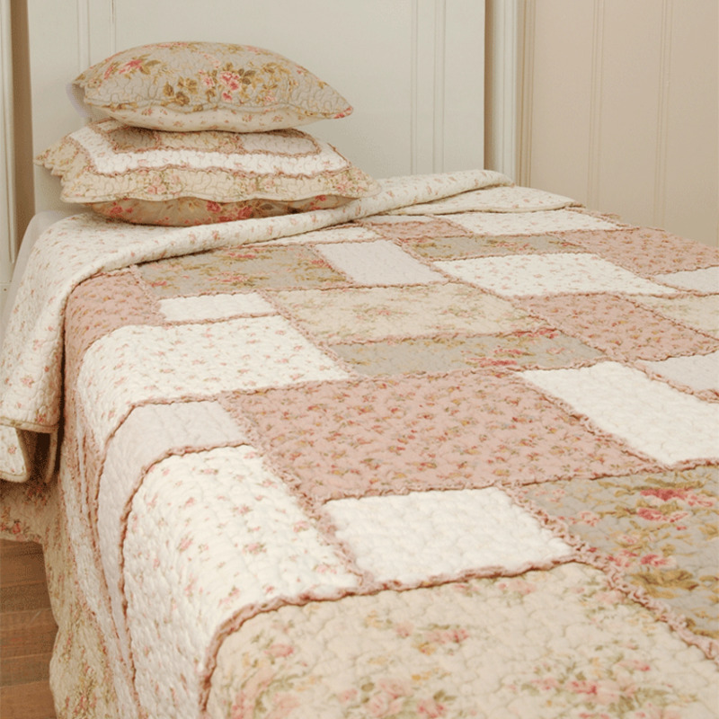 Patchworková prikrývka na posteľ. Farba: staroružová/biela