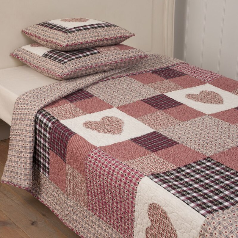 Krásna prešívaná bavlnená srdiečková prikrývka v odtieňoch bordovej a červenej. Na druhej strane je vzor drobných srdiečok. Možnosť prať v práčke (30°C). Farba: červená/bordová,tmavá modrá, smotanová