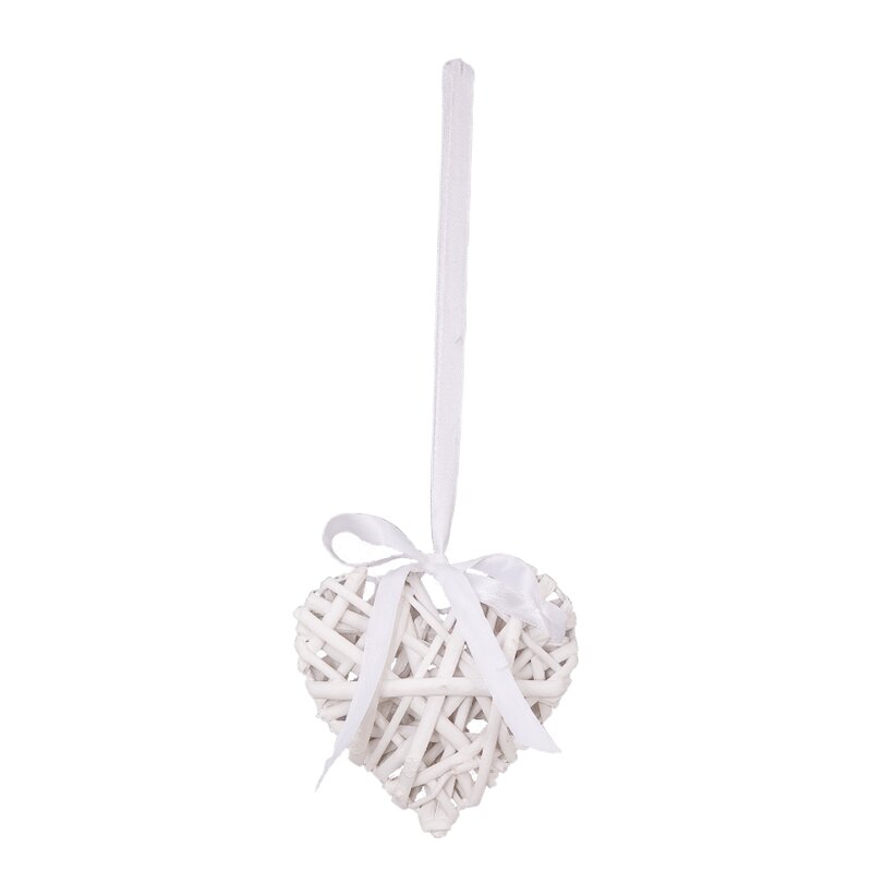 Prútené srdiečko na hodvábnej bielej stuhe - na zavesenie. Farba: biela