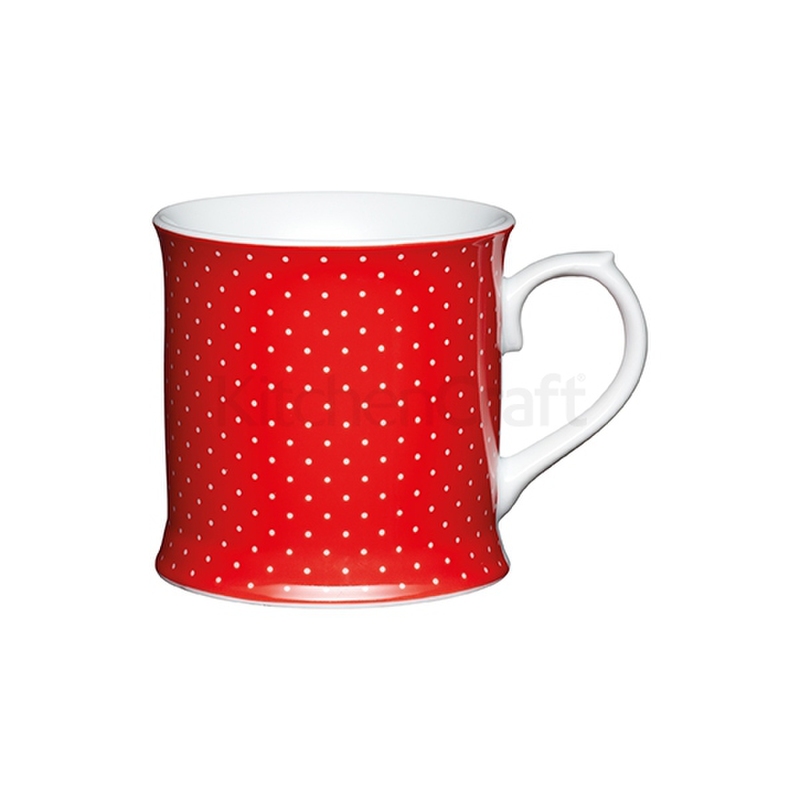 Krásna porcelánová šálka červená s bodkami od KitchenCraft na Váš obľúbený čaj alebo veľkú kávičku. Šálka je vhodná do umývačky riadu aj do mikrovlnky.