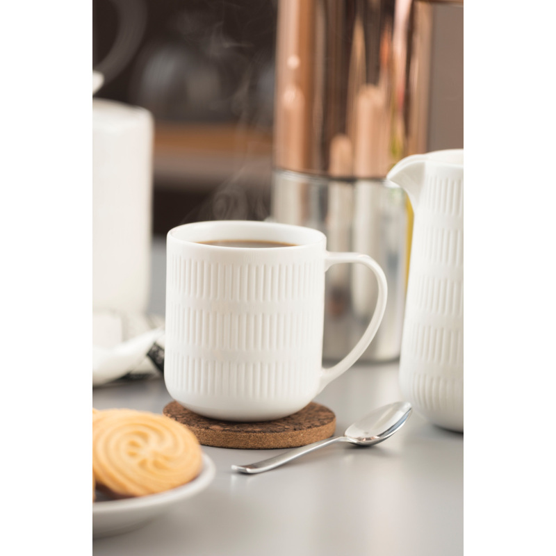 Dokonale jednoduchý a čistý štýl do Vašej kuchyne. Vychutnajte si svoj nápoj z krásnej keramickej šálky s pekným dizajnom. Biela farba so vzorom jednoduchých rýh/liniek pekne vynikne v akejkoľvek kuchyni. Šálka je vhodná do umývačky riadu aj mikrovlnnej rúry.