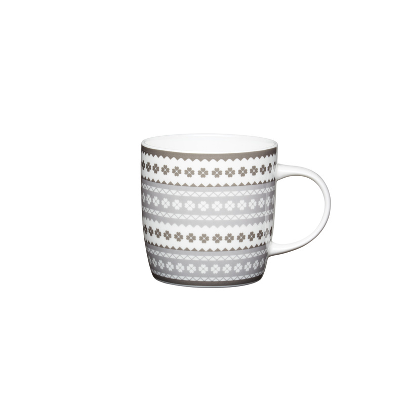 Vychutnajste si svoju šálku kávy alebo čaju z krásneho porcelánového hrnčeka s uškom, ktorý je dekorovaný jemnými sivými kvetmi. Vhodný aj do umývačky riadu a mikrovlnky.