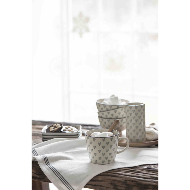 Roztomilé sivé srdiečka na šálke s uškom Vám zaručia dostatok lásky servírovanej s horúcou kávou, čajom či čokoládou.