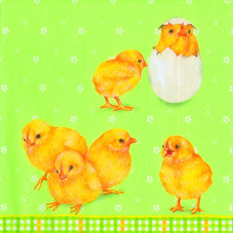 Servítky - veľkonočné kuriatka na zelenom podklade - 3-vrstvové, balenie obsahuje 20 ks servítkov.