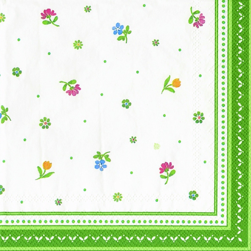 Servítky - jemné lúčne kvietky so zeleným lemom - 3-vrstvové, balenie obsahuje 20 ks servítkov.