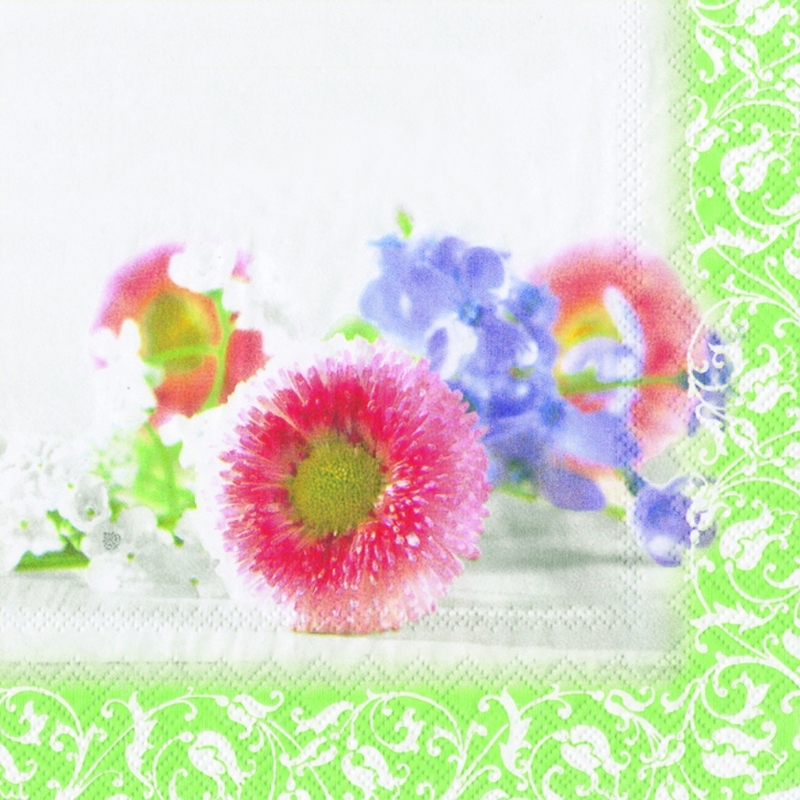Servítky - kvietkované so zeleným lemom - 3-vrstvové, balenie obsahuje 20 ks servítkov.
