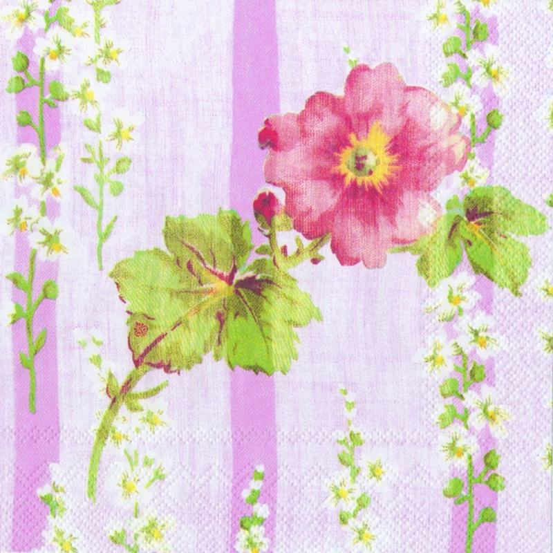 Servítky - jemný ružový kvietok na ružovom podklade - 3-vrstvové, balenie obsahuje 20 ks servítkov.