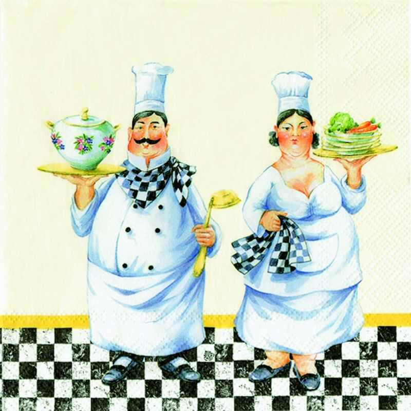 Servítky - so šéfkuchárkou a šéfkuchárom - 3-vrstvové, balenie obsahuje 20 ks servítkov.