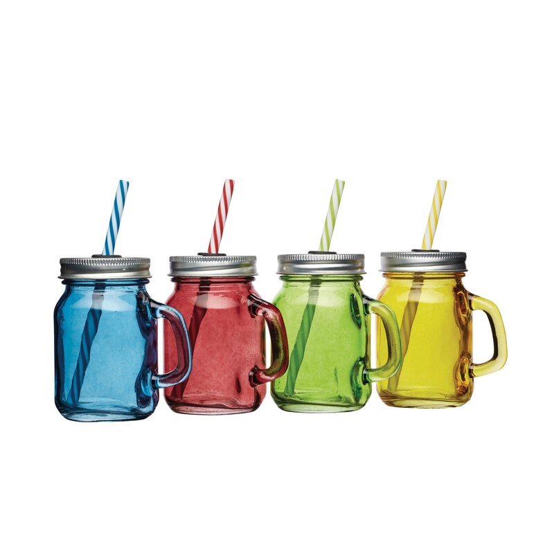 Perfektné pre záhradné párty a oslavy - tento set 4 malých pohárikov s uškom a so slamkami dodajú Vašim oslavám šmrnc. Pridajte ich k Vašej letnej záhradnej výbave. Môžete s nimi leňošiť v záhrade pri dobrej knižke a popíjaní chutných limonád. Sú zabalené v darčekovej krabičke.