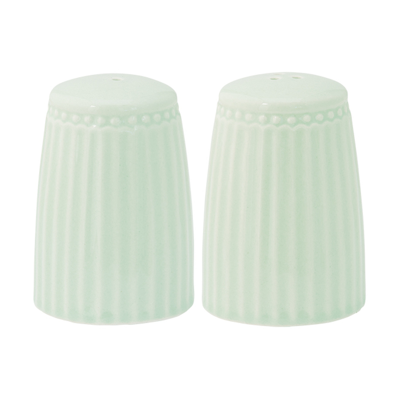 Štýlové stolovanie do dokonalosti privediete aj s touto sadou pocelánovej solničky a koreničky od dánskej značky Green Gate.