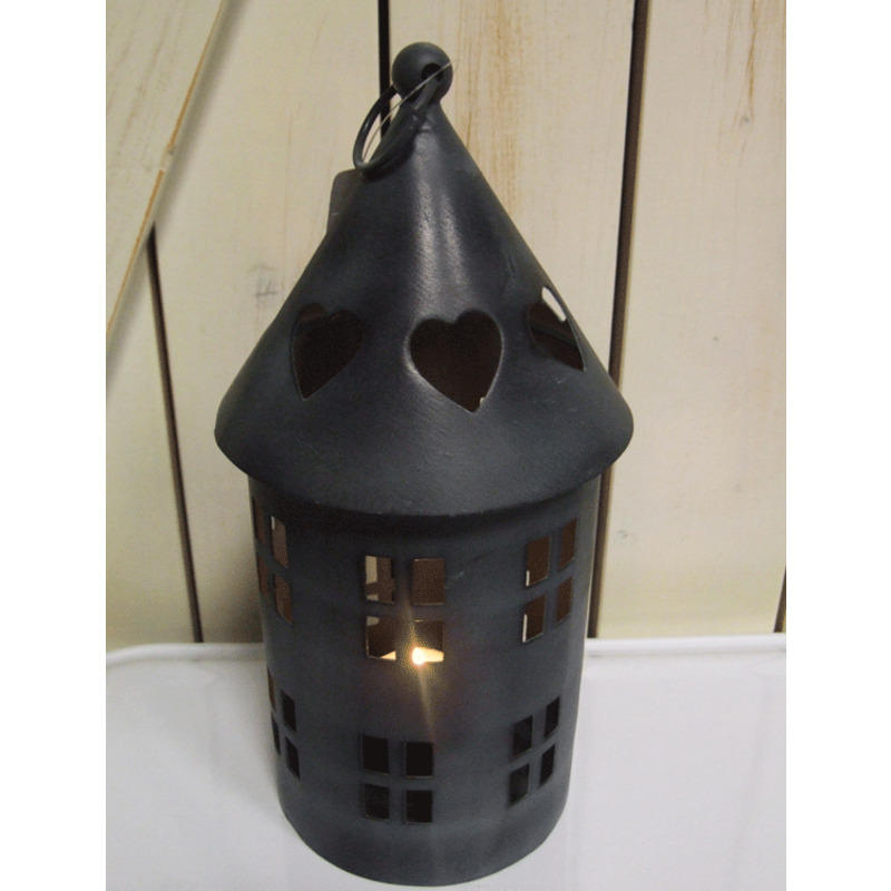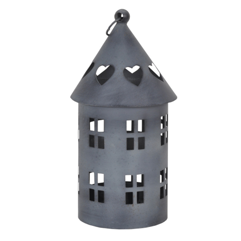 Kovový lampášik v tvare domčeka - kahanček sa vkladá z dolnej strany domčeka - je na vyvýšenom mieste, takže môže byť položený i na stole. Farba: zlatá