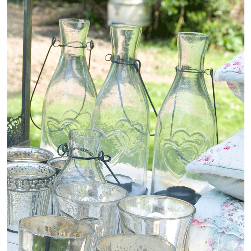Sklenený svietnik so srdiečkom - kovové otváracie dno na sviečku, kahanček. Má i uško na zavesenie.